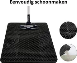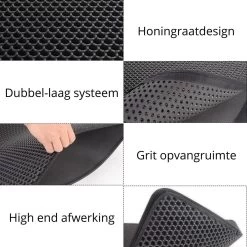 Dankzij het strakke honingraatdesign en het gestructureerde oppervlak worden de korrels die aan de poten blijven hangen makkelijk opgevangen. Het grit uit de kattenbak komt hierdoor in de onderste laag van de mat terecht waardoor het niet door heel je huis ligt, hierdoor moet je minder schoon maken en is je huis schoner dan ooit tevoren. Als de mat vol zit kun je het grit en vuil makkelijk weggooien in de prullenbak. Lees het kopje ‘Makkelijk reinigen’ voor de verschillende schoonmaak mogelijkheden van de mat.