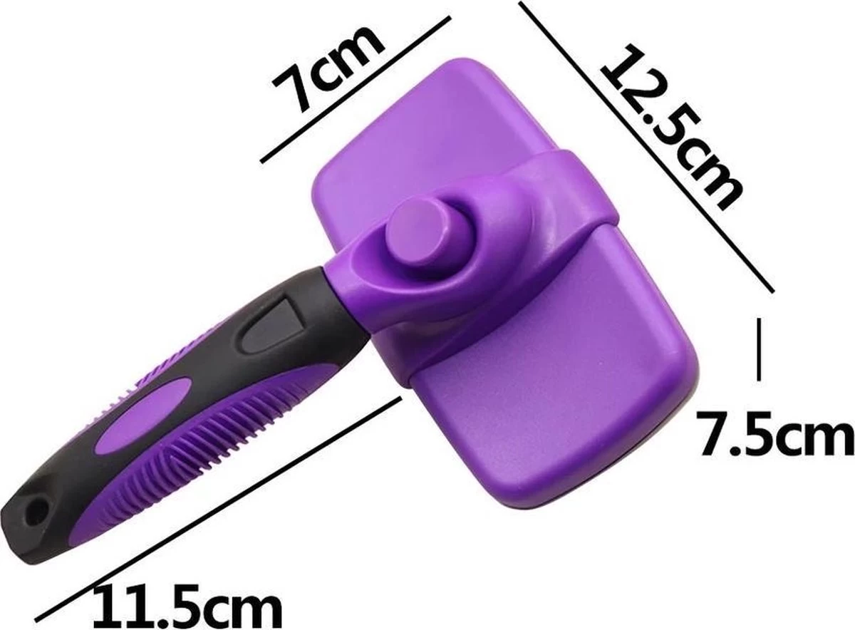 Na het uitgebreid borstelen van de vacht kan je de borstel erg gemakkelijk schoonmaken. Je kan namelijk een knop indrukken die ervoor zorgt dat de tanden van de kam zich intrekken waardoor het haar makkelijk van de borstel af te schuiven is. Vervolgens kan je weer op de knop drukken om ervoor te zorgen dat de tanden weer omhoog kunnen en de borstel weer opnieuw gebruikt kan worden.