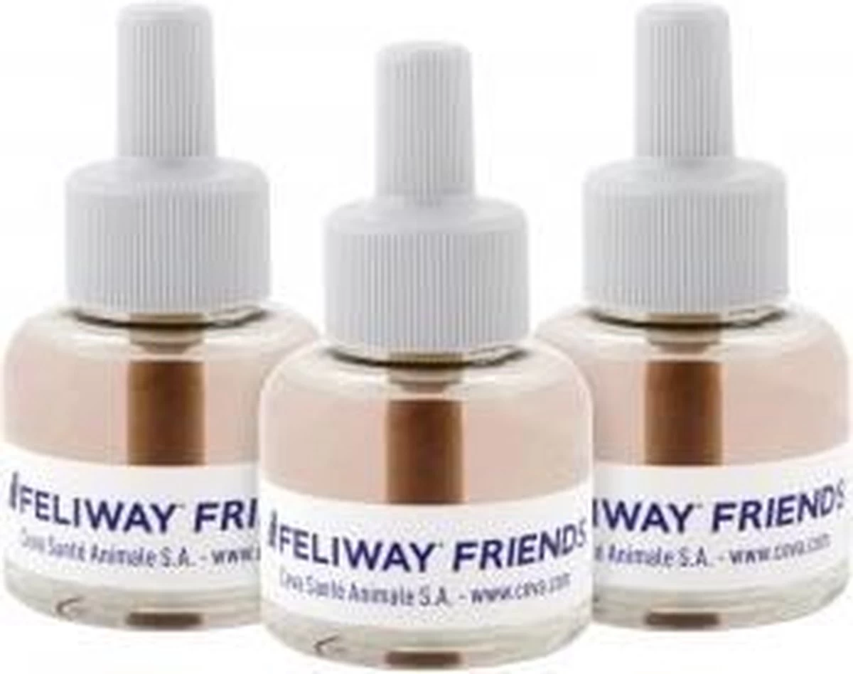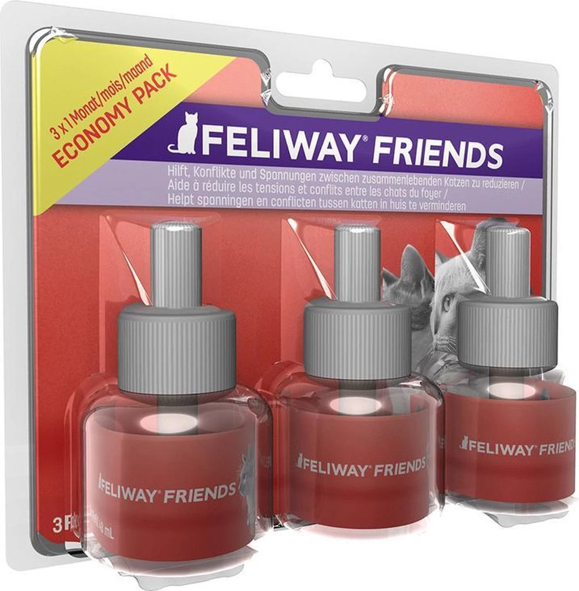 De Feliway Friends verdamper is speciaal voor huishoudens waarin meerdere katten leven. Vermindert spanning en conflictsituaties tussen huiskatten. De Feliway Friends verdamper verspreidt geurloze feromonen (CAP; Cat Appeasing Pheromone – zogende moederkatten scheiden dit feromoon af aan de tepels) hierdoor zullen de katten ontspannen.
