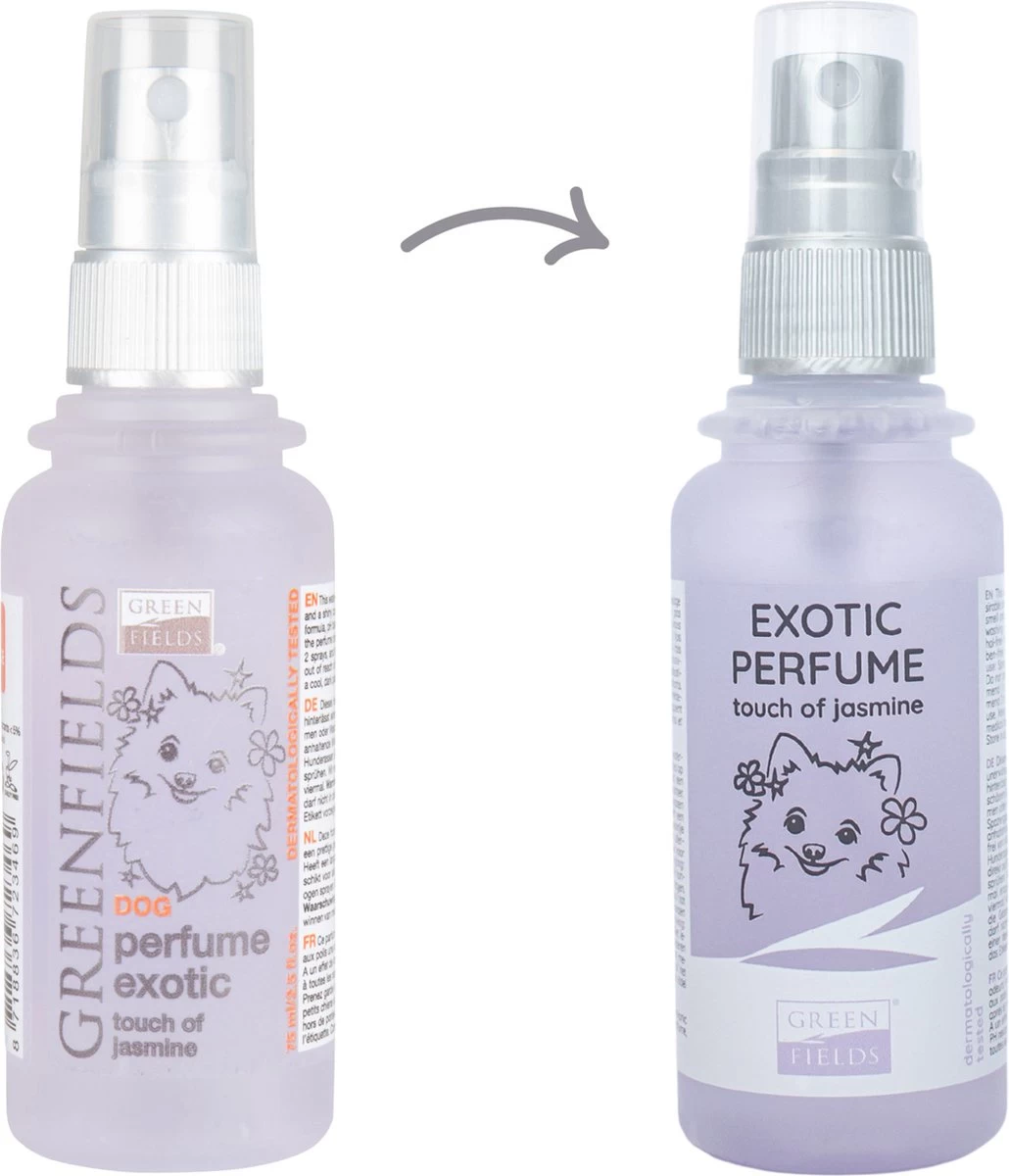 Hondenparfum Spray In 4 Geuren – Greenfields – Alchoholvrije En PH Neutrale Formule Tegen Onaangename Geurtjes – 50ml – Exotic