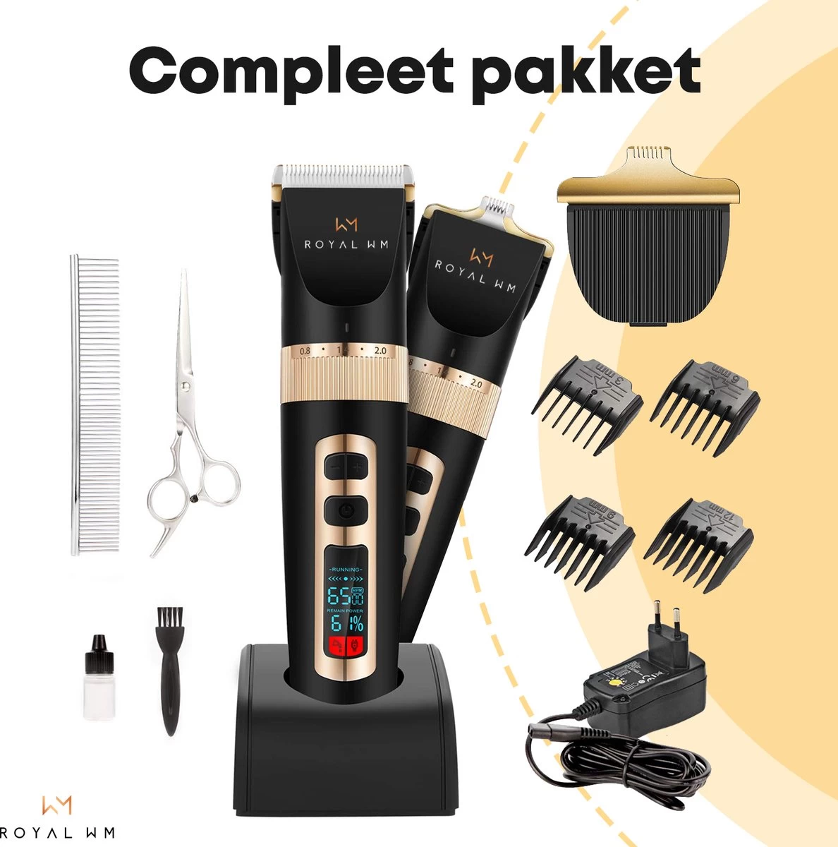 Doordat de hondentondeuse geleverd wordt met 4 verschillende opzetstukken, kun je de hondentondeuse gebruiken voor vrijwel iedere hond. Verder wordt de hondentondeuse ook geleverd met een oplader, een oplaadsnoertje en een handig borsteltje om de tondeuse mee schoon te maken. Hierdoor heb jij alles in huis om de vacht van jouw hond weer te laten stralen!