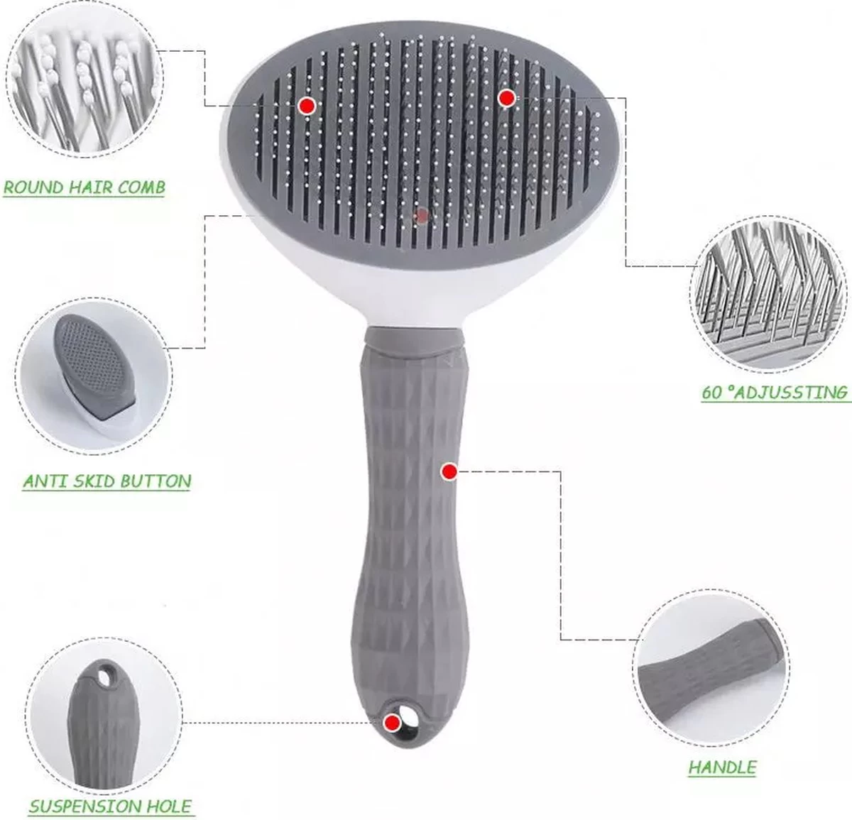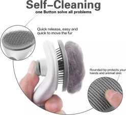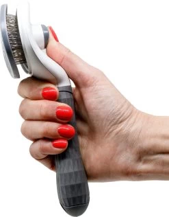 - Intrekbare borstelharen: de zelfreinigende slickerborstel is enorm gemakkelijk te gebruiken en schoon te maken; nadat u op de knop hebt gedrukt en de borstelharen hebt losgemaakt, kunt u beginnen met het borstelen van uw huisdier; na het borstelen drukt u nogmaals op de knop om de borstelharen in te trekken; de vacht kunt u gemakkelijk wegvegen, zodat u geen plukken vacht meer uit uw huisdierborstel hoeft te peuteren.