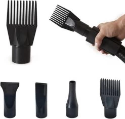 Met de vier verschillende opzetstukken krijg jij jouw hond zo weer droog en schoon. De kam kun je gebruiken om klitten te verwijderen, het ronde opzetstuk werkt uitstekend om de vacht lekker zacht en donsachtig te föhnen. Het brede opzetstuk is voor het drogen van de gehele vacht en het platte stuk juist voor delen van de vacht.