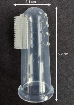 LET OP: Bij mensen met een vinger breedte groter dan 2 cm, kan de tandenborstel wat strakker om de vinger zitten.