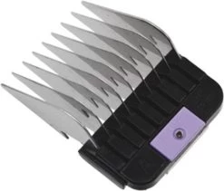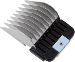 De Opzetkam Nr. 8 Type 2 van Moser is een 25 mm dikke opzetkam, de opzetkam is opklikbaar. Met de opzetkam behoud je de gewenste haarlengte tijdens het scheren. De kam is vervaardigd uit kwalitatief, roestvrijstaal en is lichtblauw van kleur. Roestvrijstalen kammen glijden snel en efficiënt door de vacht voor een gladde afwerking. Vergeleken plastic kammen heb je een beter resultaat en kan je stabieler werken. Je kan de Opzetkam Nr. 8 Type 2 gebruiken voor onderstaande tondeuses: