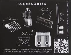 De bijgeleverde Star Blade is een metalen mes met een fijne tandsteek, geschikt voor fijn werk op moeilijk bereikbare plekken. Hij heeft een snijbreedte van 32 mm en een snijlengte van 0,3 mm. De tondeuse is extreem licht en ligt comfortabel in de hand. Hij bevat een kabel van 2 meter lang en een ophanglus!