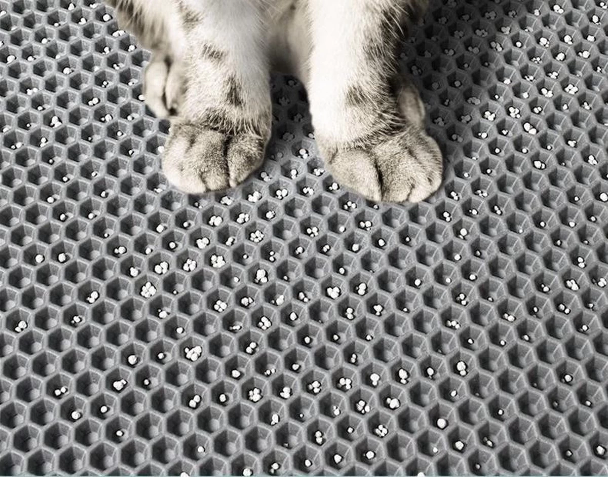 Dankzij het strakke honingraatdesign en het gestructureerde oppervlak worden de korrels die aan de poten blijven hangen makkelijk opgevangen. Het grit uit de kattenbak komt hierdoor in de onderste laag van de mat terecht waardoor het niet door heel je huis ligt, hierdoor moet je minder schoon maken en is je huis schoner dan ooit tevoren. Als de mat vol zit kun je het grit en vuil makkelijk weggooien in de prullenbak. Lees het kopje ‘Makkelijk reinigen’ voor de verschillende schoonmaak mogelijkheden van de mat.