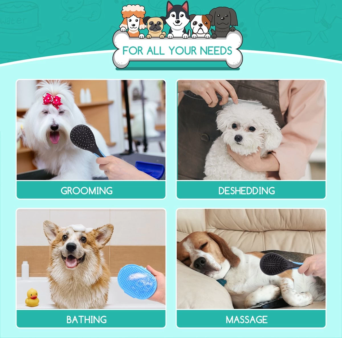 Nobleza 3 Delige Hondenborstel Set – Hondenkam – Kattenkam – Borstels – Dierverzorging – Dierenverzorging – Blauw