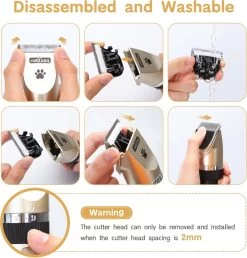 Professionele dieren trimset inclusief afstandhouders, vachtschaar en kam. Meer heb je niet nodig om de vacht van je hond of kat te trimmen. Een mooi afgewerkt draadloze uitvoering. Deze maakt weinig geluid waardoor je huisdier minder angst zal ervaren. De tondeuse is zonder opzetstuk in te stellen vanaf 0,8 t/m 2 mm. De vier opzetstukken variëren van 3 mm t/m 12 mm. Bij geheel lege accu is er slechts 2 uur nodig om de tondeuse 100% op te laden.
