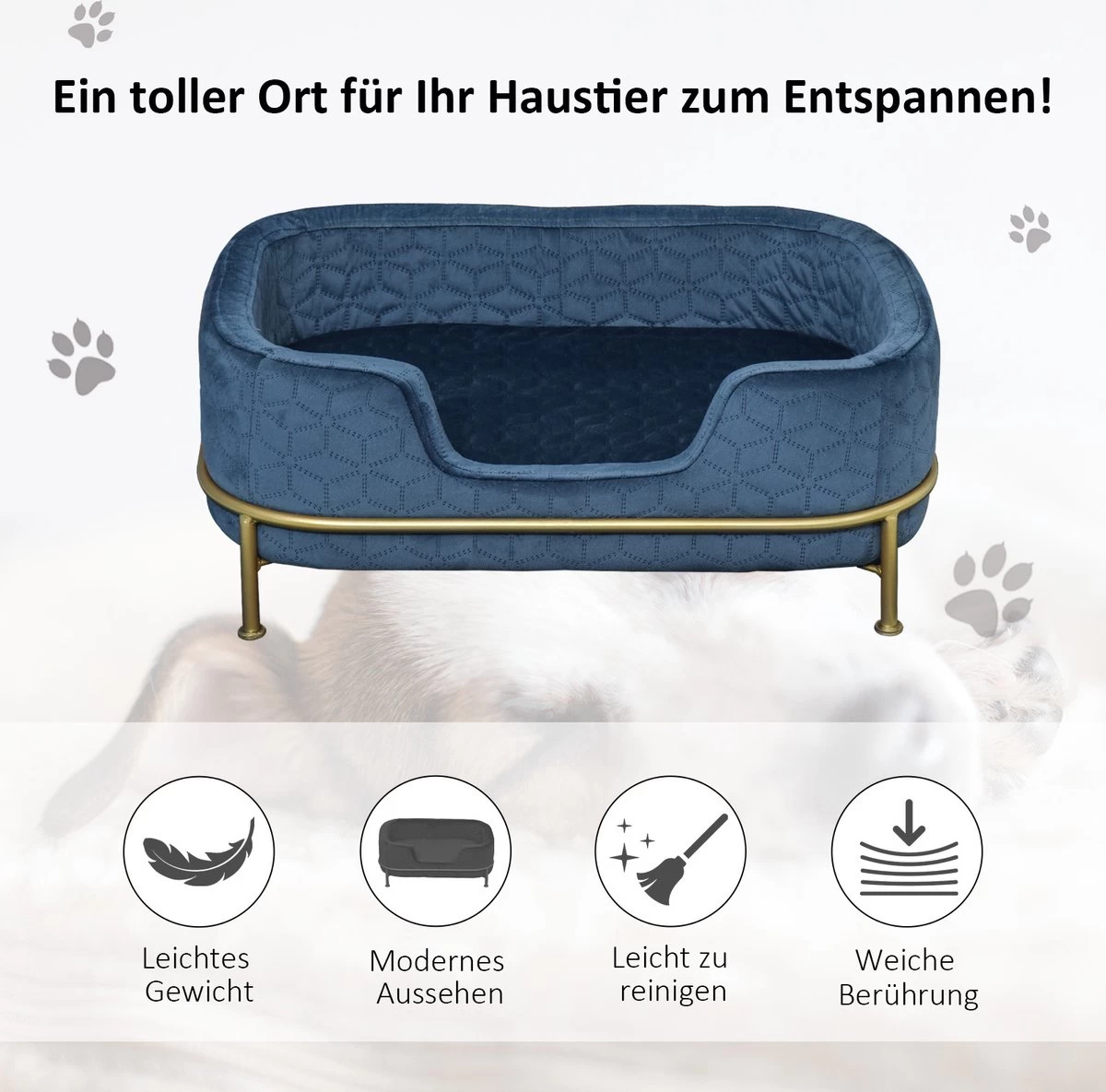 PawHut Hondenbank Met Rugleuning Huisdierenbank Met Metalen Poten Hondenbed Kattenbank D04-157