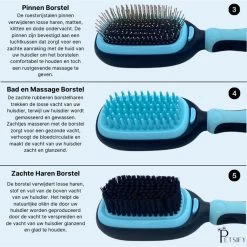 - Zachte Haren Borstel: De borstel verwijdert losse haren, stof en vuil van de bovenvacht van uw huisdier. Het helpt de natuurlijke oliën die door uw huisdier worden geproduceerd door de vacht te verspreiden en de vacht van uw huisdier glanzend te houden.