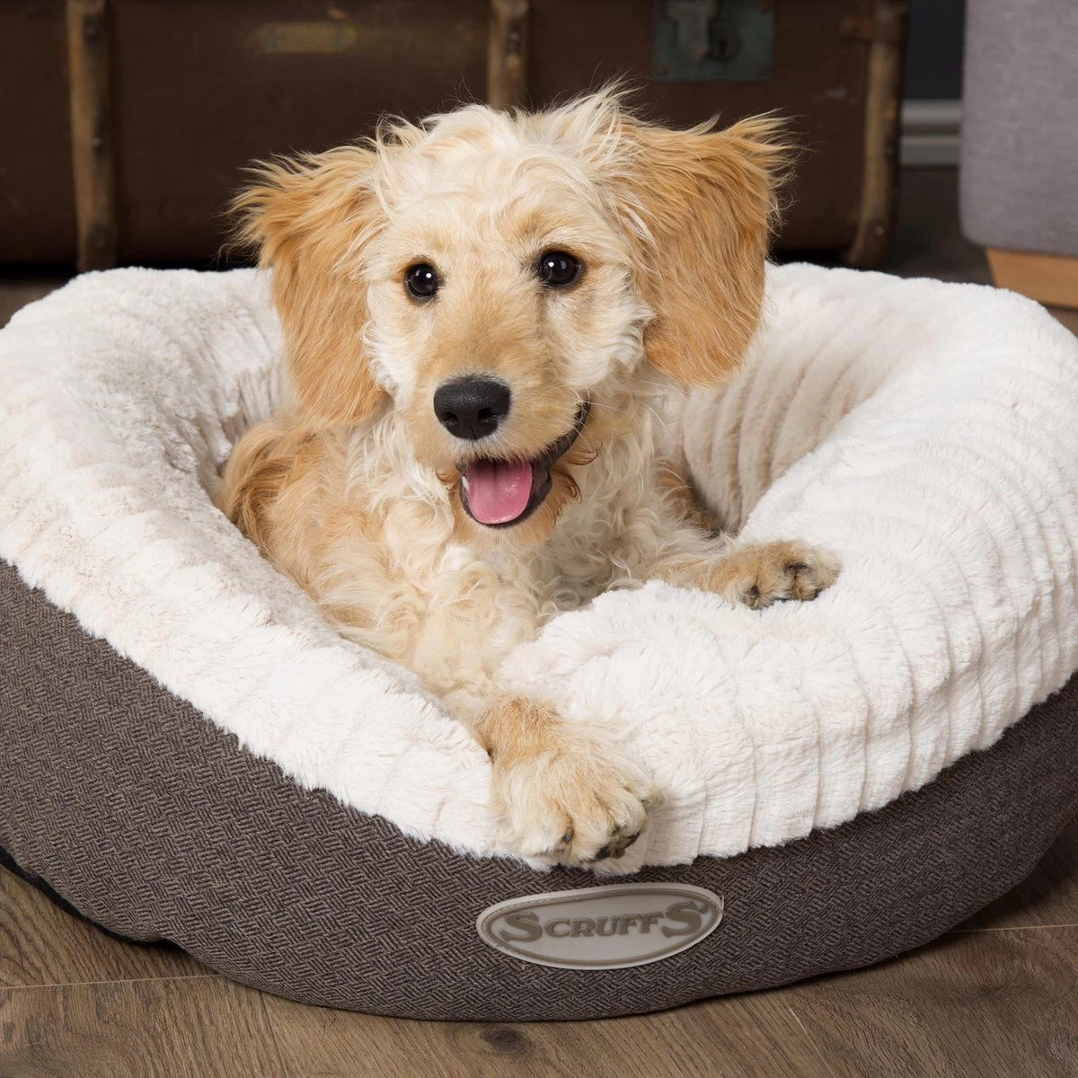 Scruffs Ellen Donut – Warme Hondenmand Van Imitatiebont – Kleur Grijs, Roze Of Bruin – Maat M Of L – Kleur: Grijs, Maat: Medium