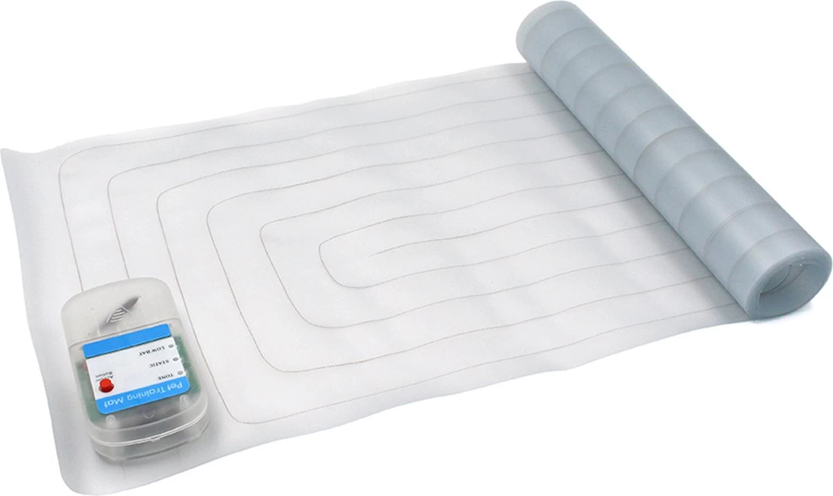 Schrikdraad in een matje. Trainingsmat voor hond en kat conditioneert uw huisdier om die gebieden te mijden waar het niet gewenst is. Tafel, aanrecht, bankstel, slaapkamer, bedden, motorkap, vuilnisemmer en andere plekken waar uw huisdier van u vandaan moet blijven kunt u afschermen met de trainingsmat. Bij aanraking geeft de mat kleine schokjes die geen pijn doen maar een schrikeffect geven. Uw huisdier leert van de opgedane ervaring en zal in het vervolg de plek mijden zodat u de mat elders kunt inzetten. Voor gebruik binnenshuis.