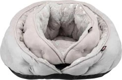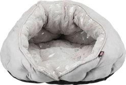 Schuilplaats feather is een zachte rustplek met zilveren veertjes print waarin uw kat heerlijk kan slapen. De plek heet een stevig geïntegreerd kussen en slipvaste onderkant. De schuilplaats is gemaakt met velours/pluche, polyester bekleding en polyestervlies vulling. Daarnaast is het doorgestikt en eenvoudig met de hand te wassen.
