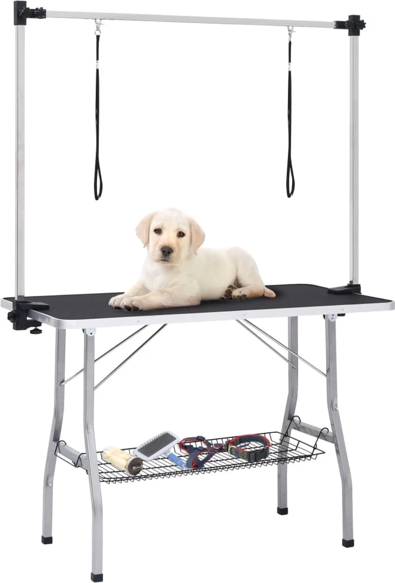 VIDAXL Hondentrimtafel Verstelbaar Met 2 Lussen En Opbergschap