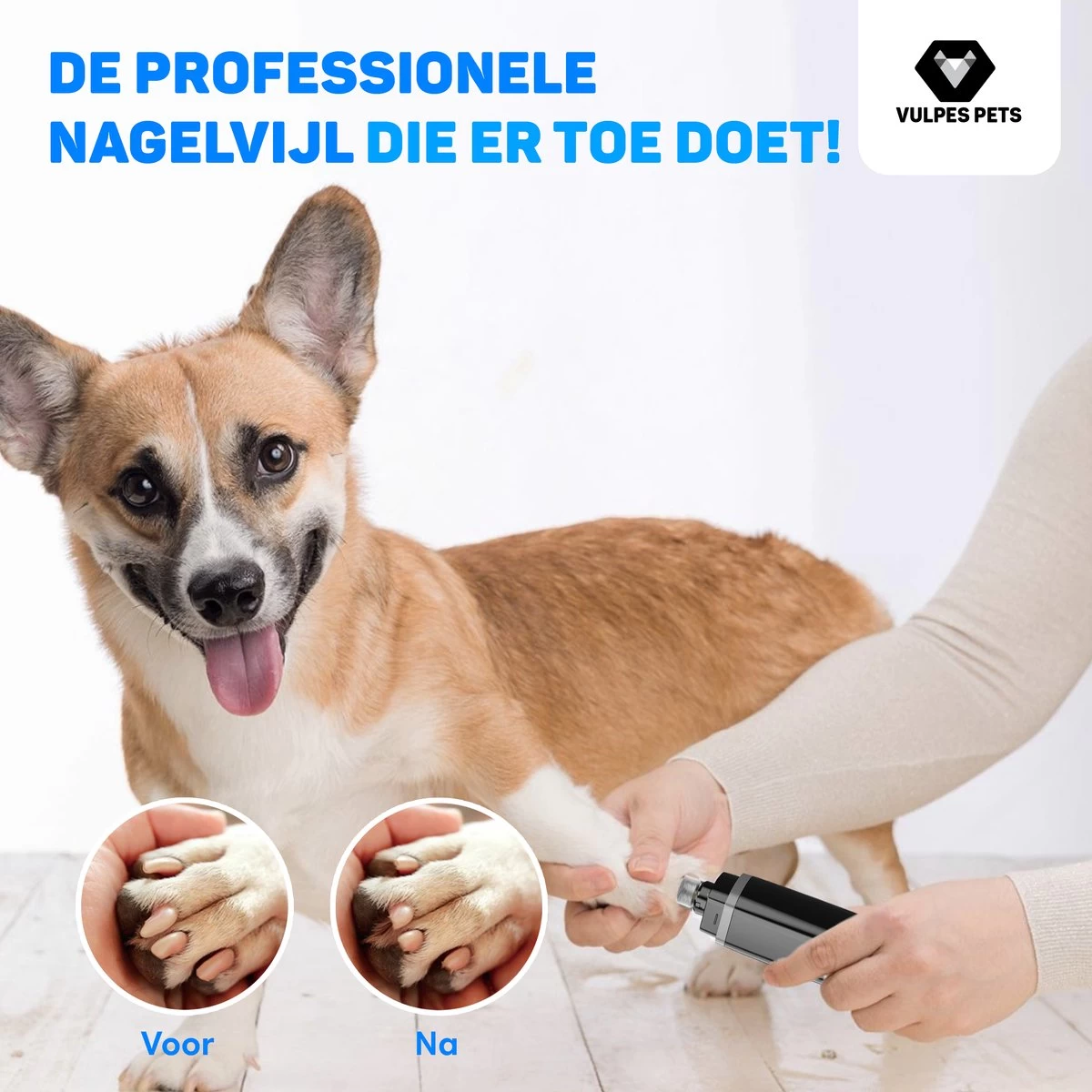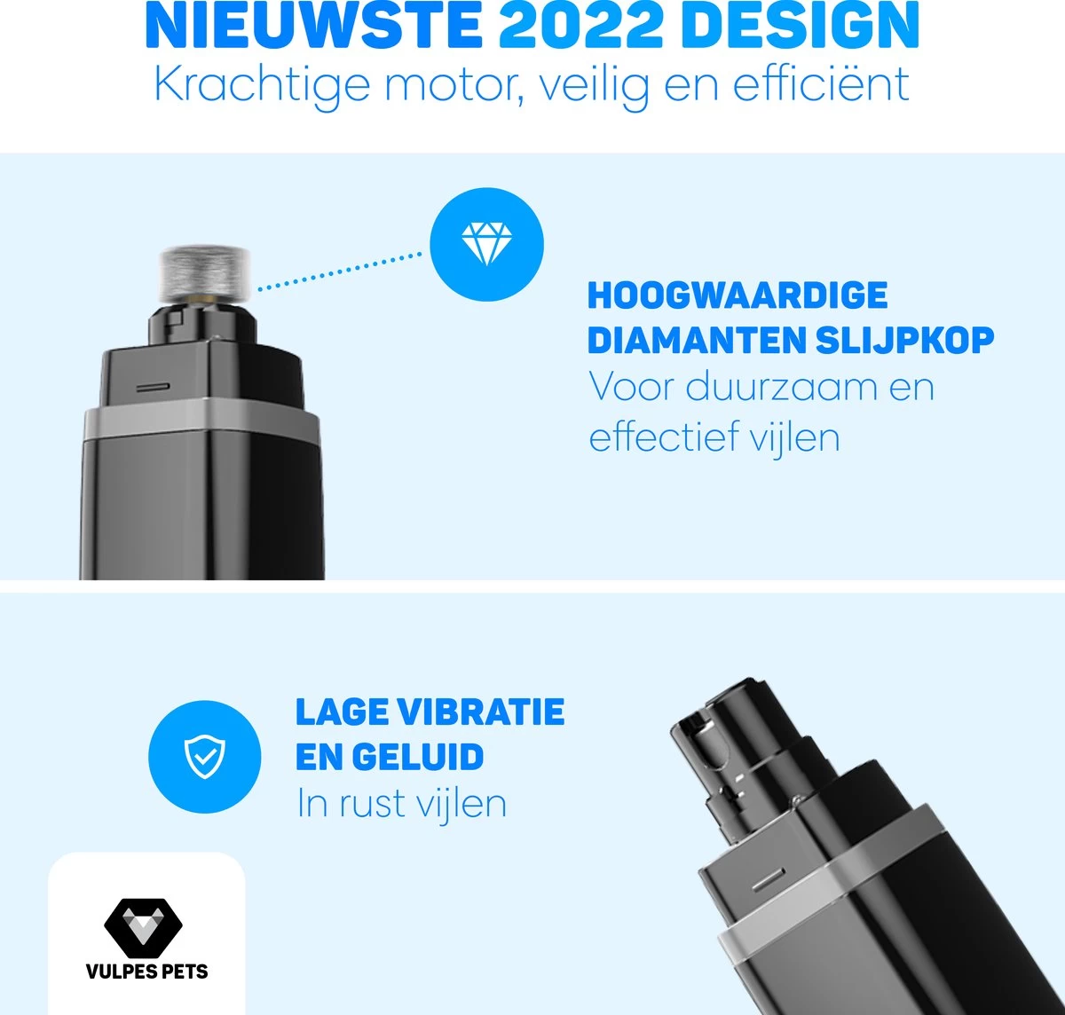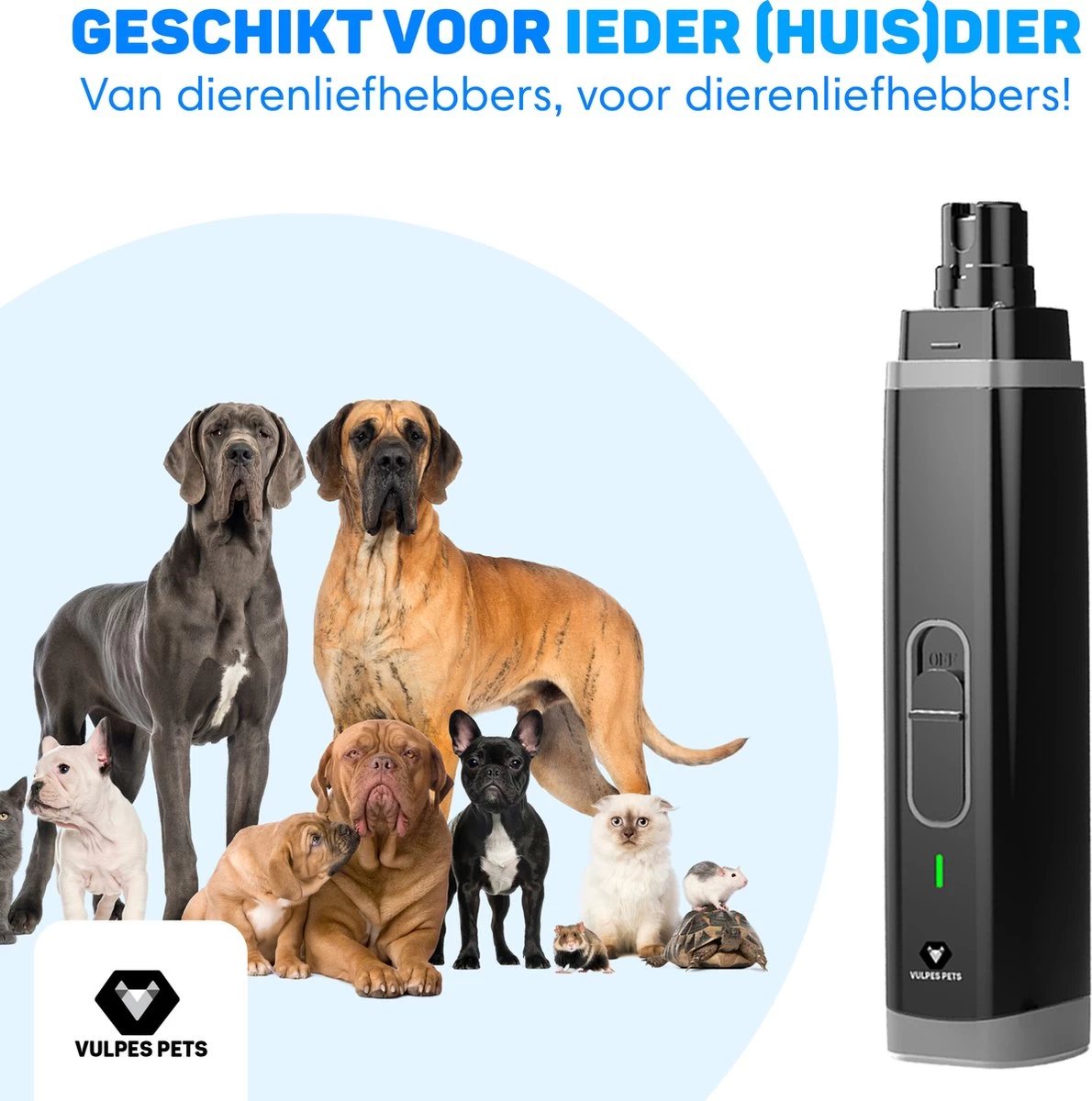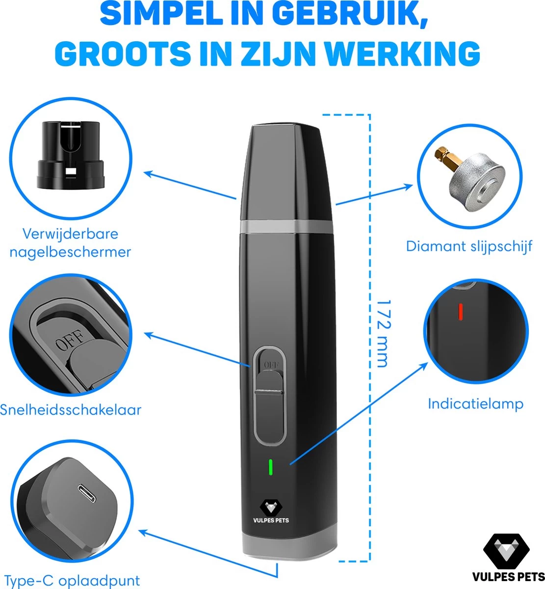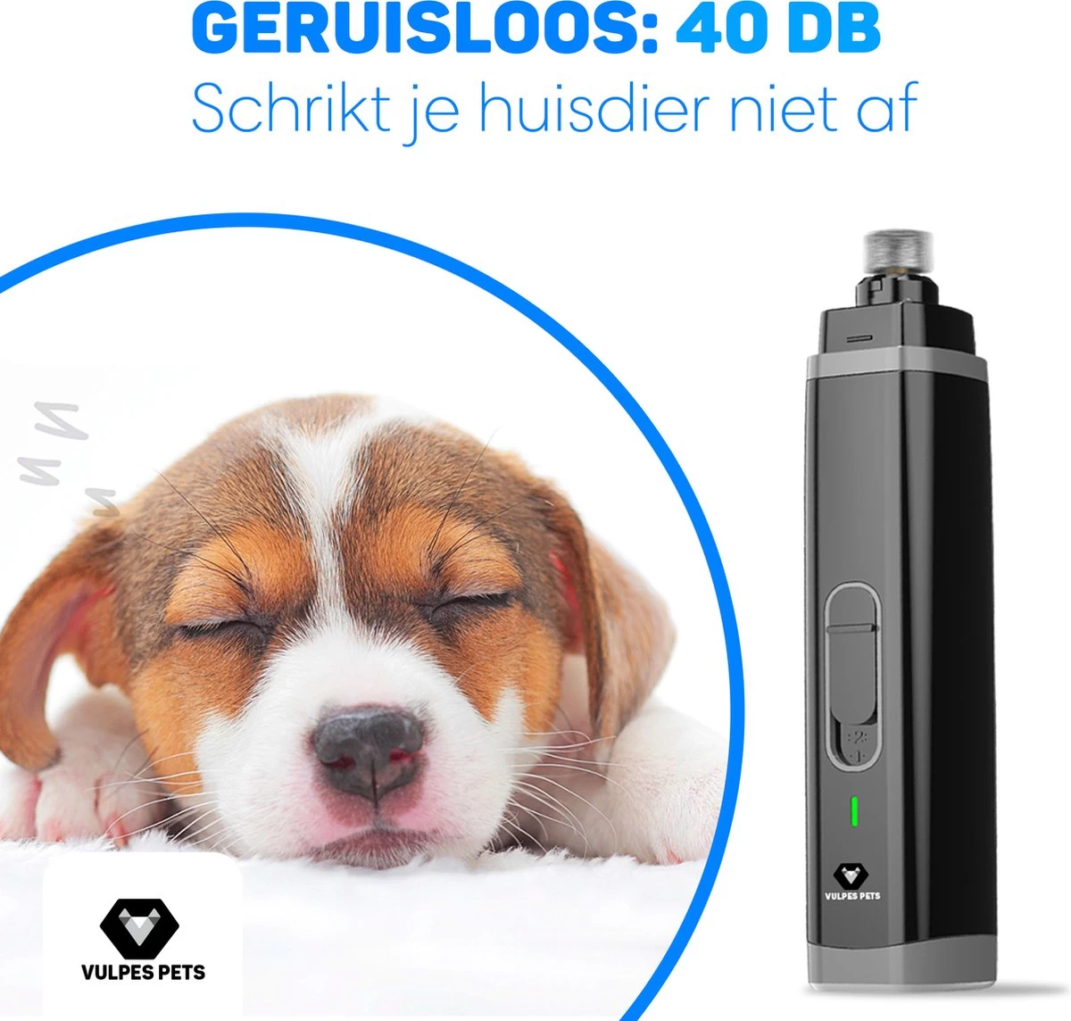 Vulpes Pets® Elektrische Nagel Vijl Voor Huisdieren – Knipper – Schaar – Trimmer – Oplaadbaar – Draadloos – Diamant Vijlkop – Voor Honden, Katten En Dieren – PRO – Zwart